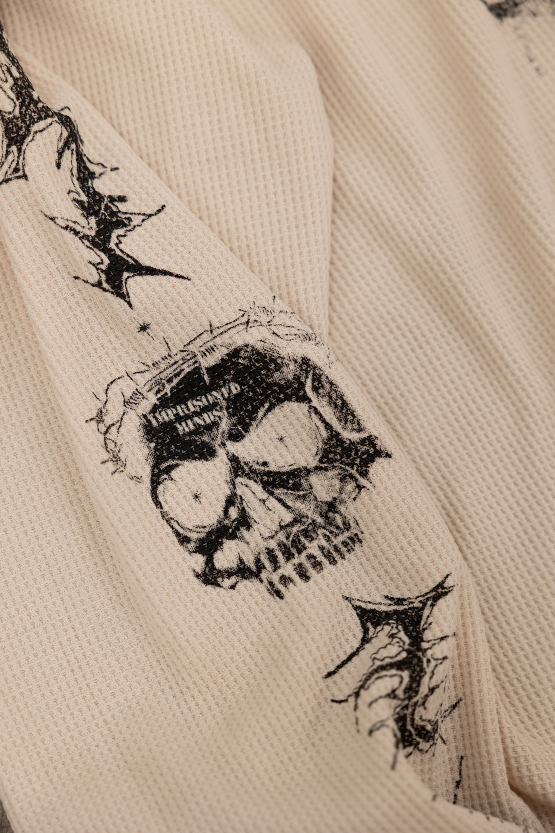 This one’s for the ones built from the dark. The SOTF Thermal Long Sleeve is thick, rugged, and made to last — just like you. Featuring a massive skull wrapping down the sleeves, it’s a nod to the fight, the fire, and everything you've survived. On the back, our logo is entangled in thorns — a symbol of strength through pain. And at the neckline, SOTF is etched in bold: Survival of the Fittest. This isn't just a shirt — it's a reminder. Only the relentless make it out.