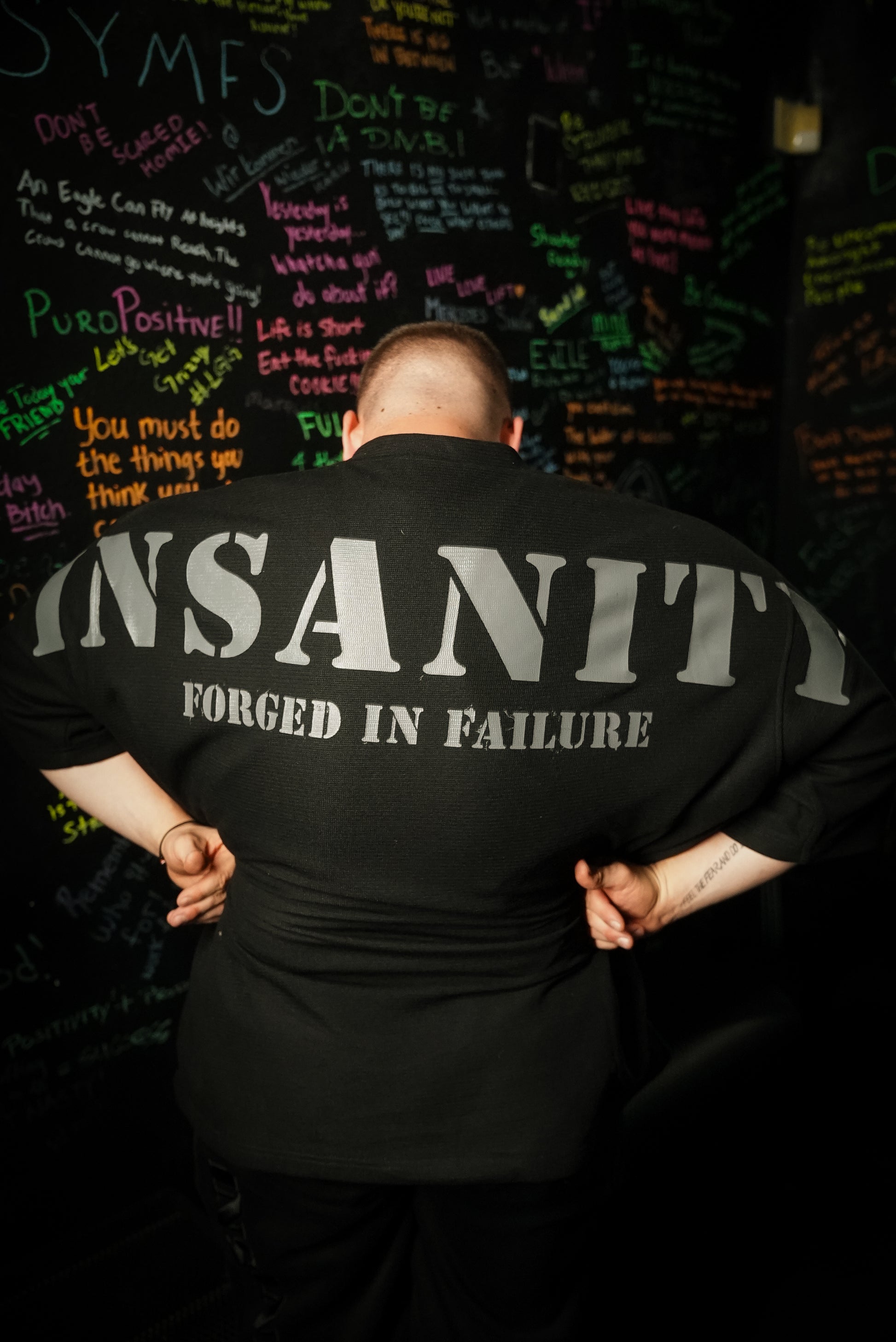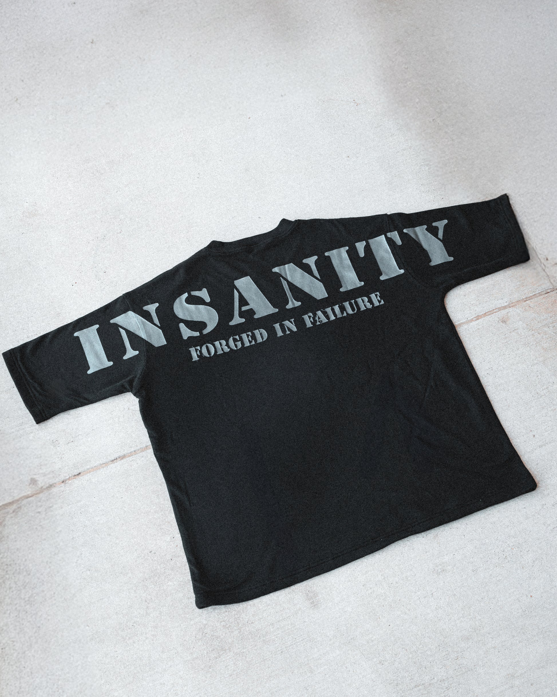 Made from double-layered, high-quality cotton, it’s designed for comfort and durability during your toughest sessions. Featuring our signature 'Controlled Insanity' design across the chest and back, it makes a bold statement. The iconic Forged in Failure skull emblem on the front bottom right corner and distressed 'Forged in Failure' lettering along the back add the perfect finishing touches. Built for those who embrace the grind and forge their strength through challenges.