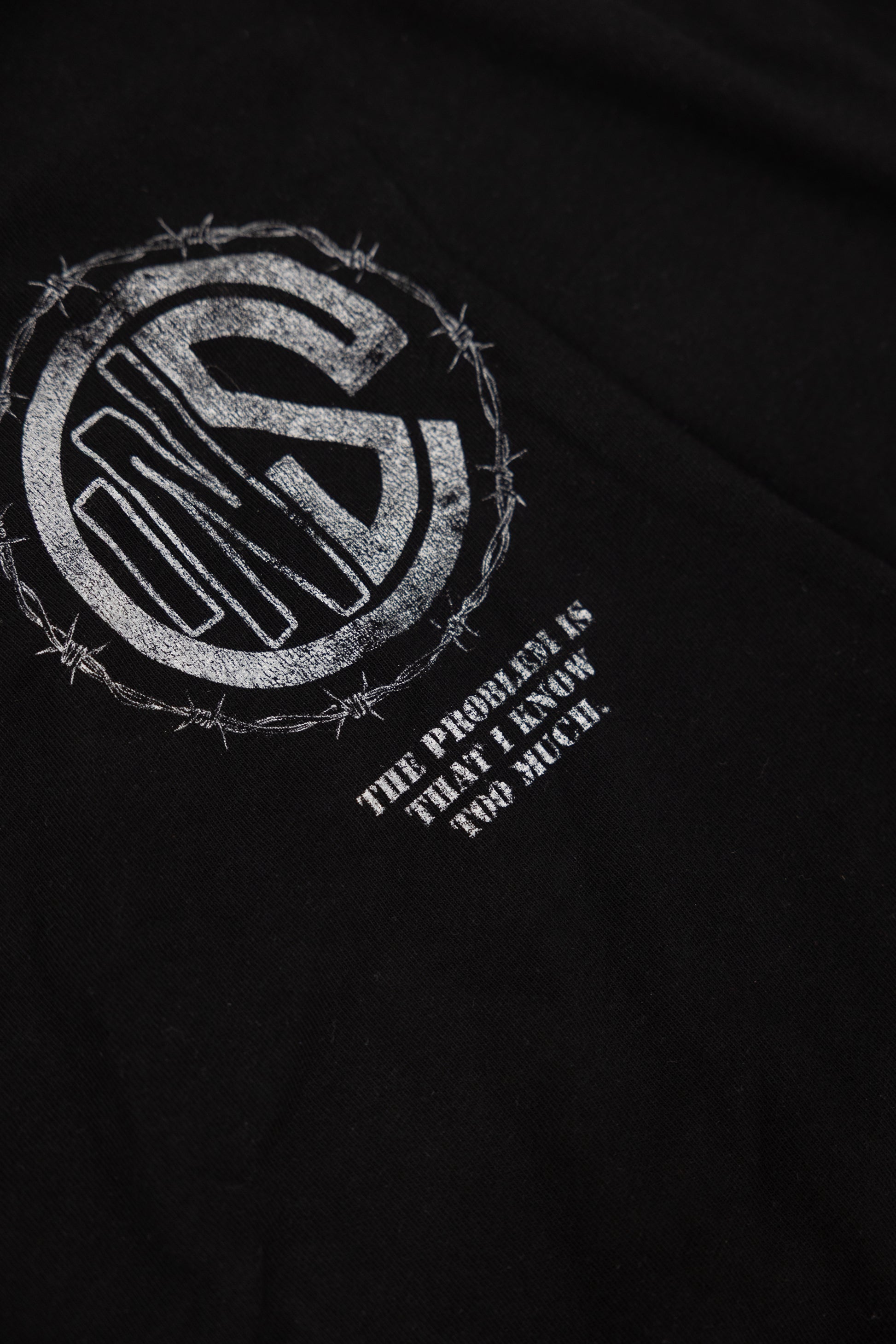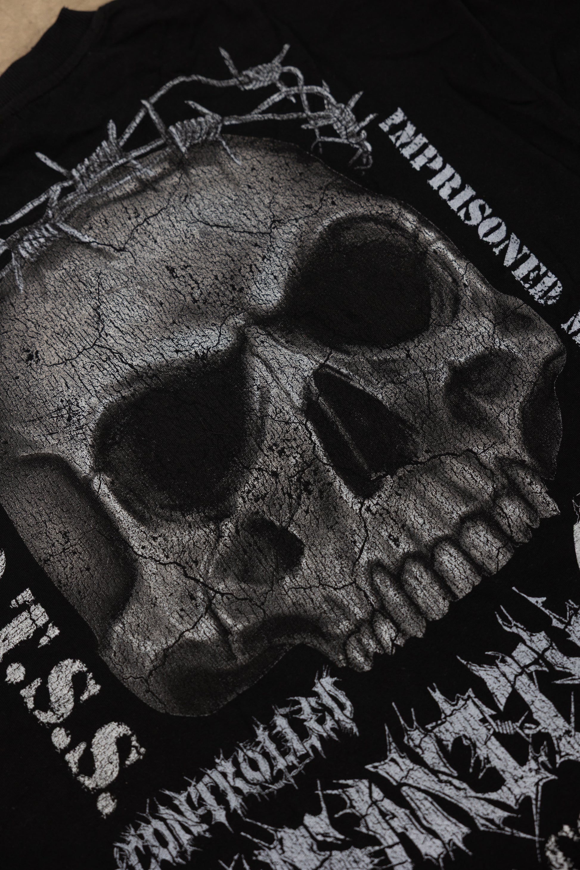 Unleash your inner strength with the Corrosion Skull Tee from our Imprisoned Minds collection. This bold graphic tee features a striking design of a skull crowned with a halo-like barbed wire, symbolizing the eternal battle between confinement and liberation. The words OTSS (Only the Strong Survive) stand as a defiant reminder that resilience is the key to breaking free from the mental chains that bind us. Fear is Corrosion to the Mind challenges you to confront your fears head-on and rise above them, unbroken and unstoppable.