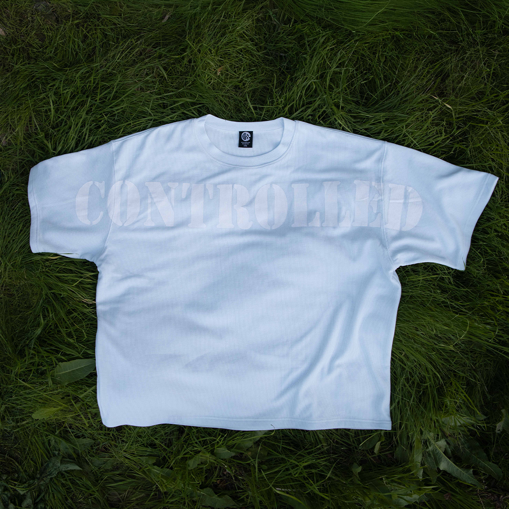 Our signature pump cover is constructed from double-layered, premium heavyweight cotton for an unbeatable oversized fit and luxuriously soft feel. It's built for comfort and designed for statement-making style, featuring our foundational mantra: CONTROLLED across the front chest and INSANITY spanning the back. This iteration is rendered in the UNC Blue color way, featuring a UNC Blue base with white lettering.